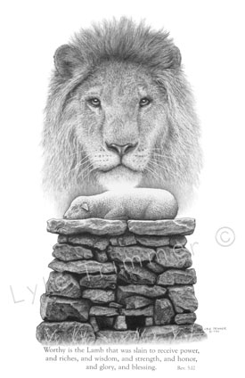 Lion and LambIn the Scriptures, the Lamb is a symbol of salvation. The typology is seen clearly in Genesis when Abraham was tested to offer up his only son. Abraham uttered prophetic words “God will provide Himself a Lamb for an offering…” (Genesis 22:8) Jesus was the perfect fulfillment of that and many other prophecies when He gave Himself as “The Lamb of God who takes away the sin of the world.” This drawing portrays Christ as The Book of Revelation presents Him, as both the Lion who reigns and the Lamb that was slain. 11" x 17" . . . . . PRINT SOLD OUT Available as Greeting Cards only. See order form for details. |